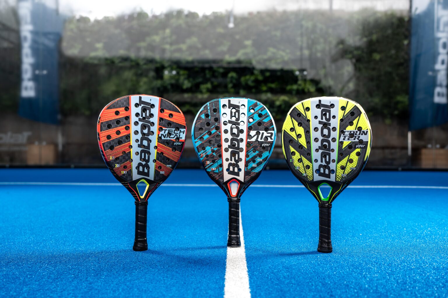 Raquette polyvalente Babolat. Bon équilibre puissance/contrôle en goutte d’eau.