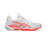 Asics Solution Speed FF 3 Clay Femme Corail — la Solution Speed dernière gen en corail, la vitesse Asics avec le vrai confort FlyteFoam sur terre battue.