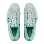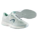 Version féminine de la Revolt Pro 4.5 Clay en coloris vert aqua lumineux. La construction stabilité Head avec châssis renforcé, amorti intermédiaire confortable et semelle Clay à chevrons est pleinement présente. Le chaussant féminin assure un confort adapté à la morphologie du pied.