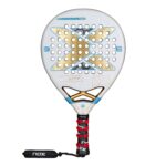 Raquette Nox forme goutte d'eau. Carbone 18k. noyau Black Eva. Équilibre moyen. surface rugueuse. Niveau : avancé / compétition, professionnel. Jeu orienté polyvalence.