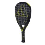 Raquette Adidas forme diamant. Carbone 18k. noyau Eva. Équilibre moyen. surface rugueuse. Niveau : avancé / compétition. Jeu orienté polyvalence.