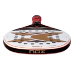 Raquette Nox forme beach tennis. Carbone 3k. noyau Black Eva. Équilibre bas. surface rugueuse. Niveau : avancé / compétition, débutant / intermédiaire. Jeu orienté polyvalence.