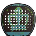 Raquette Black Crown forme goutte d'eau. Carbone 3k. noyau Black Eva, Soft Eva. Équilibre élevé, moyen. surface rugueuse. Niveau : avancé / compétition, professionnel. Jeu orienté polyvalence.