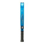 Carbone 3K, Multieva, forme diamant, équilibre élevé, surface rugueuse. Le 3K apporte un toucher plus souple que le 12K — la balle colle un peu plus longtemps au tamis. La Multieva adapte la densité selon la zone d'impact.