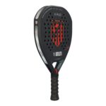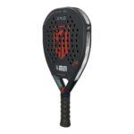 Raquette Bullpadel forme hybride. Carbone 12k. noyau Multieva. Équilibre élevé. surface rugueuse. Niveau : professionnel. Jeu orienté puissance.