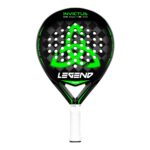 Raquette Legend forme ronde. Carbone 3k, Carbone 24k. noyau Soft Eva. Équilibre moyen, bas. surface rugueuse. Niveau : professionnel. Jeu orienté polyvalence.