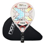 Forme goutte d'eau, carbone Fibre de verre, noyau Hard Eva. Raquette Nox forme goutte d'eau. Fibre De Verre. noyau Hard Eva. Équilibre moyen. surface lisse. Niveau : professionnel. Jeu orienté polyvalence.