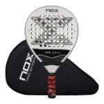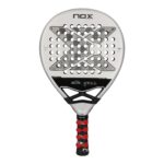 Raquette Nox forme goutte d'eau. Carbone 18k. noyau Black Eva. Équilibre moyen. surface rugueuse. Niveau : avancé / compétition. Jeu orienté polyvalence.