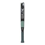 Raquette Siux forme ronde. Carbone 24k. noyau Eva. Équilibre bas. surface rugueuse. Niveau : professionnel. Jeu orienté contrôle.
