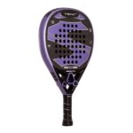 Raquette Softee forme hybride. Carbone 3k. noyau Black Eva. Équilibre moyen. surface rugueuse. Niveau : avancé / compétition. Jeu orienté polyvalence.