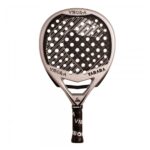 Raquette Vibor-A forme hybride. Carbone 12k. noyau Eva. Équilibre moyen. surface sablonneuse. Niveau : avancé / compétition. Jeu orienté polyvalence.
