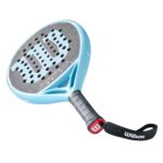 Raquette Wilson forme ronde. noyau Comfort Foam. Équilibre bas. surface rugueuse. Niveau : avancé / compétition, débutant / intermédiaire. Jeu orienté contrôle.